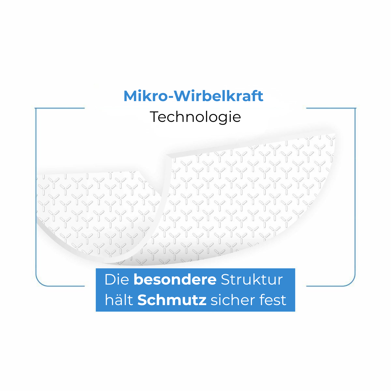Mit ihrer innovativen Mikro-Wirbelkraft Technologie besitzen die Tücher eine besonders strukturierte Oberfläche, die selbst feinste Partikel sicher festhält. Ideal für alle, die Wert auf Sauberkeit, Frische und maximale Hygiene legen.